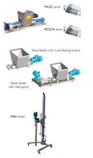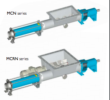 Features an hopper, 2 pre-feeding screws and 1 blade feeder Version with hopper and double synchronised pre-feeding screws, mounted below a vane crusher. The vane crusher blades chop the product and push it towards the bottom of the hopper. The two pre-feeding screws then push the product into to the pump stator.